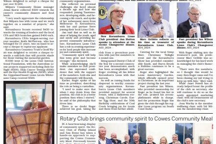 Korumburra Lions Club Changeover Dinner Jan Hutton succeeds Roger Powell as Korumburra Lions Club president, emphasizing community spirit and growth. Powell’s leadership strengthened the club, increasing membership and achieving recognition. Hutton aims to continue this progress, supported by the new committee and their commitment to local initiatives and community engagement.